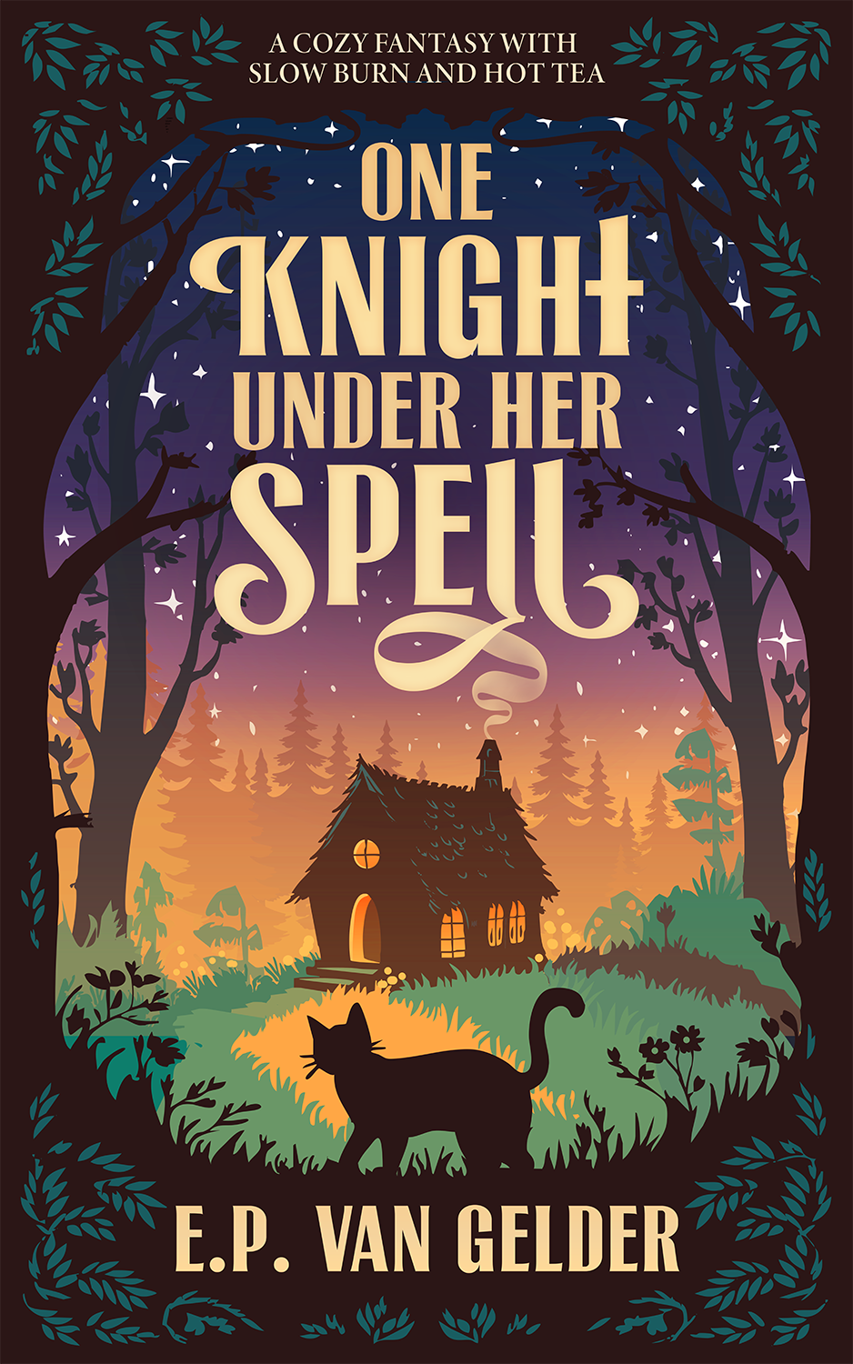 EP van Gelder's latest book: One Knight Under Her Spell is a cozy cottagecore fantasy bubbling with humor and steeped in romance. With found family, cat antics, and enough tea to drown a scandal, it is the perfect escape for fans of T. Kingfisher or Travis Baldree.